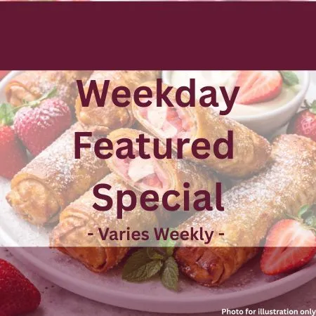 Previous Product Next Product Blueberry Cheese Blintz $14.95 Category: Weekday Specials Related products Quick View Quick View Weekday SpecialsSteak & Eggs $13.95 Add to cart Store is closed now. Please order tomorrow at 7:00am. (Next opening: Monday) Quick View Quick View Weekday SpecialsSweet Potato Pancake topped with Cinnamon Butter $15.45 Add to cart Store is closed now. Please order tomorrow at 7:00am. (Next opening: Monday) Quick View Quick View Weekday SpecialsChorizo & Egg Empanada $14.95 Add to cart Store is closed now. Please order tomorrow at 7:00am. (Next opening: Monday)